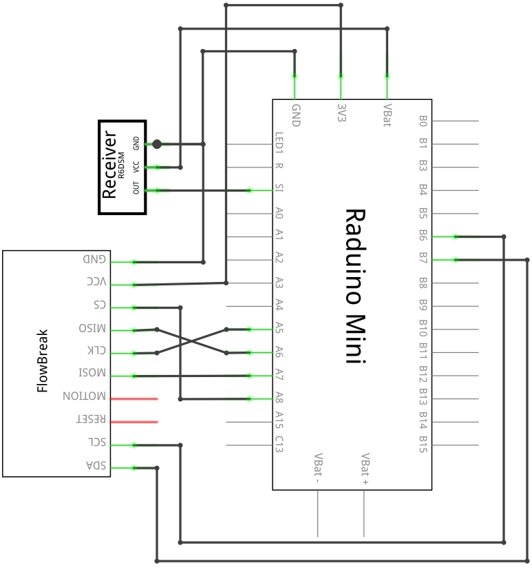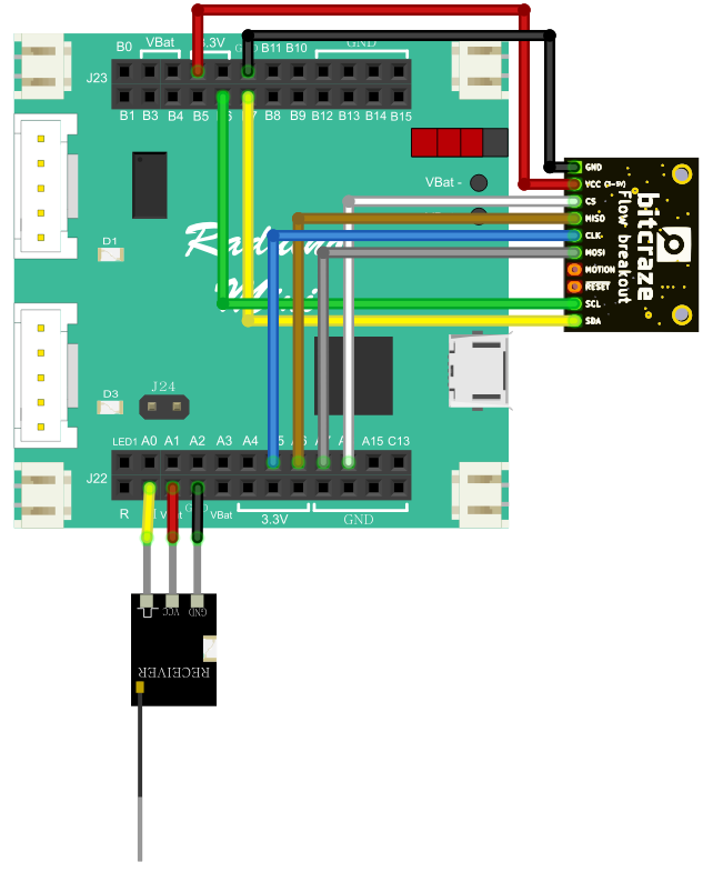 - 라두이노 미니 드론 , SBUS 수신모듈(현재 회로는 R6DSM 사용) Flow Breakout Board(PMW3901+VL53L0X)